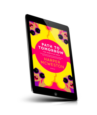 “A vibrant book cover with bright colors and animated faces wearing sunglasses. The main title is centralized in a bold, pink circle.”