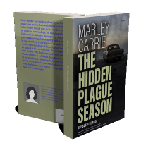 “A car with headlights on a dark, foggy road. Bold title "The Hidden Plague Season" dominates with an eerie, suspenseful vibe.”