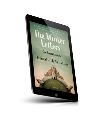 “A whimsical castle sits atop a hill under a green sky, with text overlay for title and author.”
