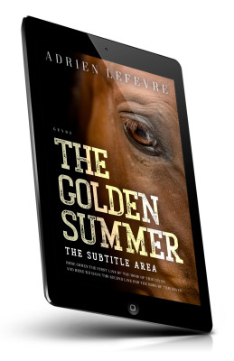 “A close-up of a horse's eye with the title "The Golden Summer," author's name, and placeholder text.”