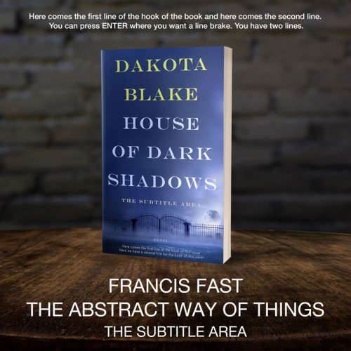 This book cover has 3 lines for the title, 1 line for the subtitle, 2 lines for the author, 2 lines for the hook, and finally 1 line for the genre.