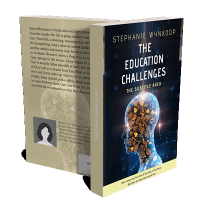 “A human head silhouette filled with educational icons on a dark background with stars. The silhouette glows with blue and orange lights.”