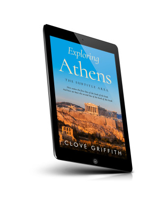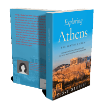 “A book cover showing ancient ruins in Athens under a blue sky with a title and author name.”