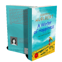 “A book cover with a child holding a yellow umbrella against a blue sky background.”