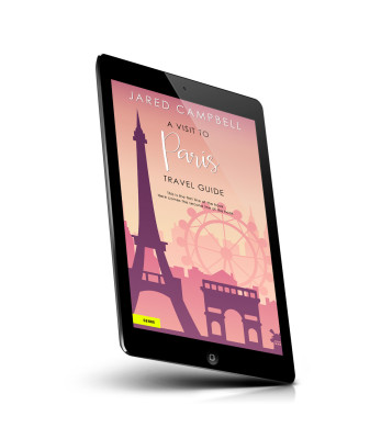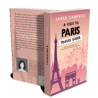 “A pink-toned travel guide cover features Paris landmarks, including the Eiffel Tower and a Ferris wheel, against a cityscape backdrop.”