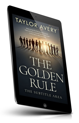 “Silhouettes of people stand against a sunset on a book cover titled "The Golden Rule."”
