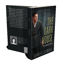 “A man in a military uniform holds a gun next to a dark, misty forest with birds, under an imposing book title.”