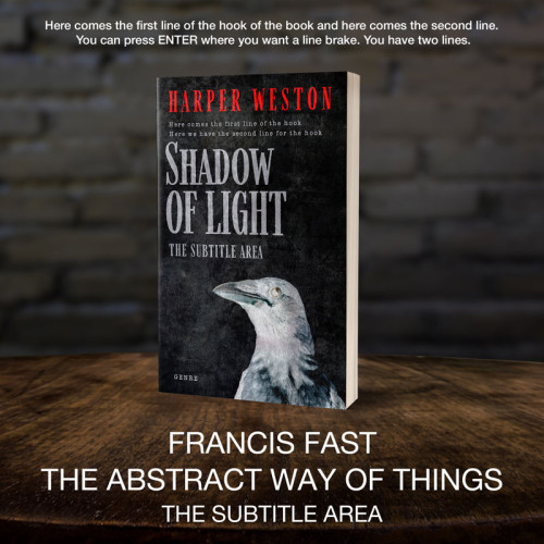 This book cover has 2 lines for the title, 1 line for the subtitle, 1 line for the author, 2 lines for the hook, and finally 1 line for the genre.