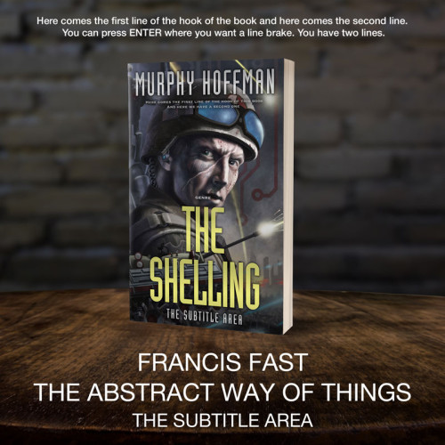 This book cover has 2 lines for the title, 1 line for the subtitle, 1 line for the author, 2 lines for the hook, and finally 1 line for the genre.