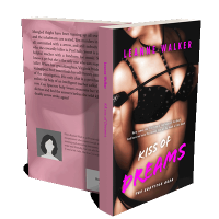 “A woman in a strappy black top is featured on the cover of a book titled "Kiss of Dreams."”