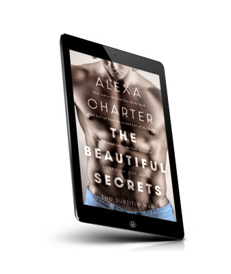 “A shirtless person with a muscular torso is the background for text promoting a book titled "The Beautiful Secrets" by Alexa Charter.”