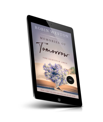 “Open book with lavender flowers on it, soft focus background, text overlay above.”