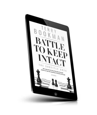 “A book cover featuring the title "Battle to Keep Intact" with a chessboard and pieces at the bottom. Monochrome color scheme.”