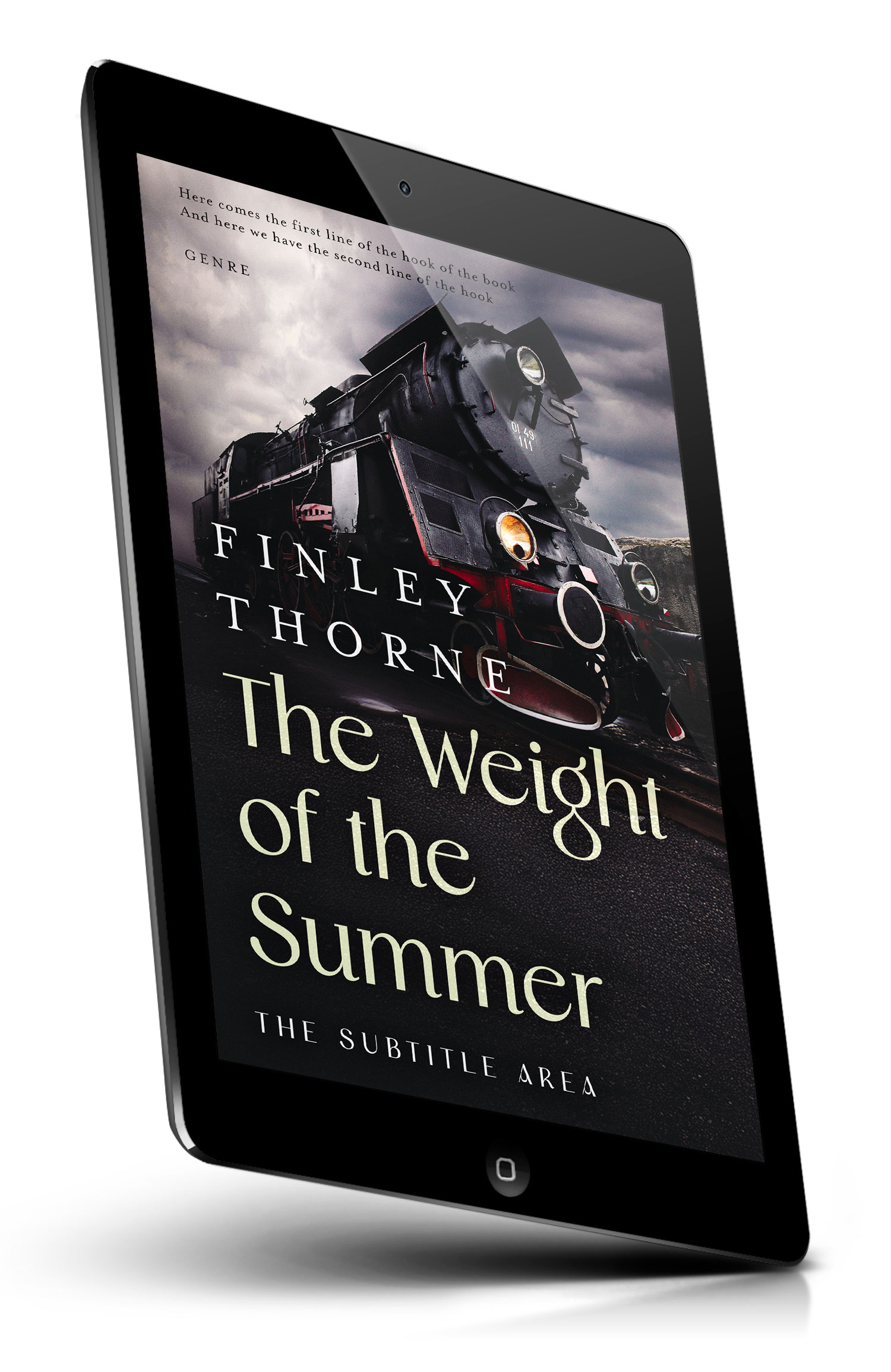 This book cover has 3 lines for the title, 1 line for the subtitle, 2 lines for the author, 2 lines for the hook, and finally 1 line for the genre.