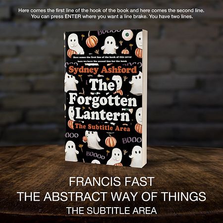 Other keywords revelant to this premade cover are ghost, autumn, pattern, eerie, decorative, playful, lantern, haunting, black background, festive, whimsical, seasonal, cover art, pumpkins.