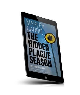 “A book cover featuring a blue background with a signpost displaying a yellow circle and black symbol resembling a virus.”