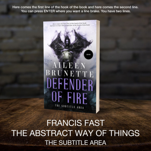 This book cover has 2 lines for the title, 1 line for the subtitle, 2 lines for the author, 2 lines for the hook, and finally 1 line for the genre.