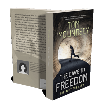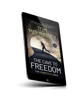 “A shadowy figure runs through a dark cave tunnel toward a lighted exit. The title "The Cave to Freedom" is prominently displayed.”