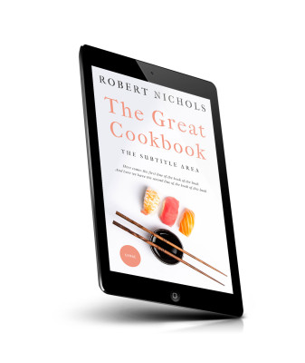 “Cover of "The Great Cookbook" featuring sushi, chopsticks, and a soy sauce dish.”