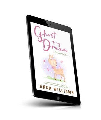 “A delicate illustration of a fawn adorned with flowers, surrounded by butterflies against a soft, pastel background.”