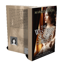 “A woman in vintage clothing looks out a window pensively on the cover of a book titled "The Western Season."”