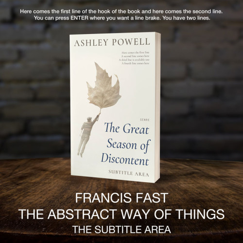 Other keywords revelant to this premade cover are photography, concept, abstract, light, magic, fog, imagination, surreal, freedom, autumn, creative, creativity, dream, atmosphere, season, life, inspiration, image, idea, conceptual, brown, weather, wind, outside, mystic, fly, minimalist, mind, leaves, air, minimal, big, surrealism, foliage, hold, free, square, gravity, manipulation, miniature, poetry, lightness, november, autumn leaf.