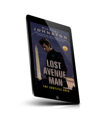 “A man in dark clothing stands against a backdrop of Washington D.C. landmarks. The scene suggests a mysterious or thriller genre.”