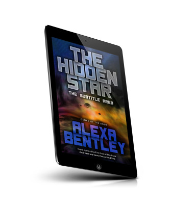 “A sci-fi book cover with a cosmic background, featuring planets and colorful nebulae. Bold metallic title text is at the top.”