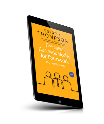“Orange book cover with three outlined figures, one wearing a tie, beneath the title about teamwork.”