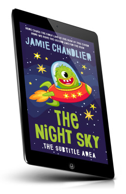“A green alien in a spaceship flying among stars, set against a dark sky background. The title reads "The Night Sky" with a subtitle below.”