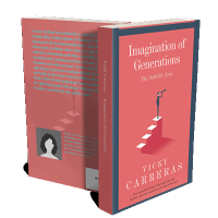 “A cheerful book cover features an illustrated person on stairs with a telescope, set against a red background, and a gold "Genre" badge.”