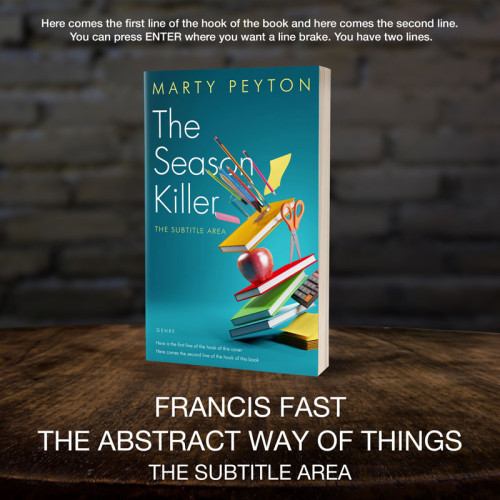 This book cover has 3 lines for the title, 1 line for the subtitle, 1 line for the author, 2 lines for the hook, and finally 1 line for the genre.