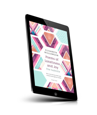 “Geometric patterns with pastel colors frame a book cover featuring poetry themes.”