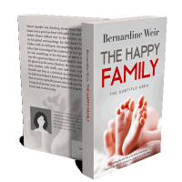 “A book cover featuring the title "The Happy Family," with a close-up image of baby feet in the background.”