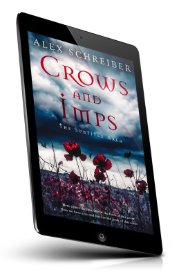 Tags: crows, imps, fantasy, literature, novel, fiction, cover, dark, mystical, schreiber, raven illustration, imp artwork, fantasy cover, mythical creatures, dark fantasy, schreiber novel, bird design, demon graphics, enchanted tale, fiction publication