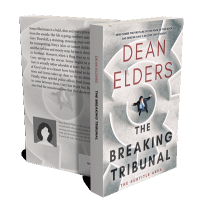 “A man in a suit stands with arms outstretched in the center of a maze, viewed from above. The book title "The Breaking Tribunal" is prominent.”