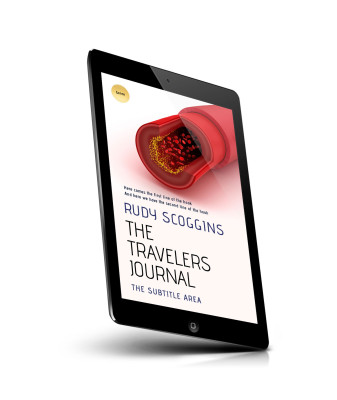 “A book cover featuring the title "The Travelers Journal" with a red tubular structure on a white background.”
