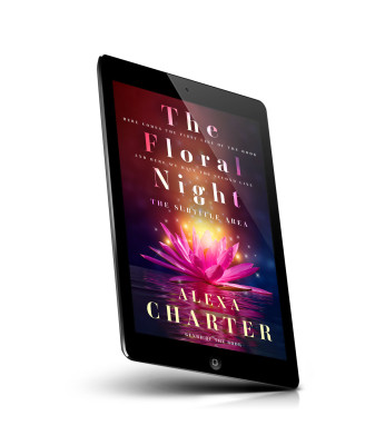 “A glowing pink lotus on water with light effects, under a colorful title featuring the author’s name.”
