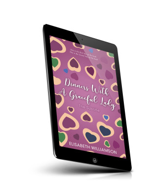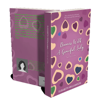 “A book cover with pink background featuring various sized heart shapes in purple, beige, and green.”