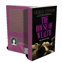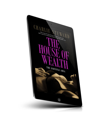 “A book cover titled "The House of Wealth" featuring a close-up of a relaxed individual, partially dressed, with a dark, elegant design.”