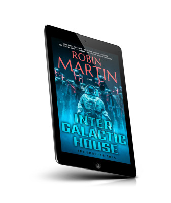 “A sci-fi book cover with a space-themed design featuring robotic figures and a person in a spacesuit. Text prominently displayed.”