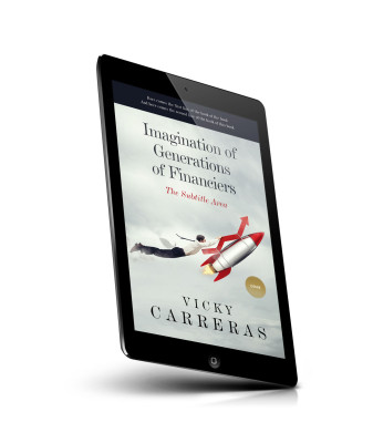 “A man in business attire hangs onto a rocket in the sky. The background is cloudy, and there's a gold seal indicating the genre.”