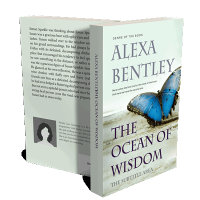 “A blue butterfly rests on a textured surface next to large title text and an author's name.”