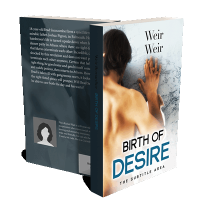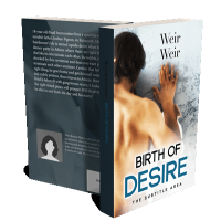 “A shirtless person faces a textured wall, pressing a hand against it. The words "BIRTH OF DESIRE" are prominently displayed below.”