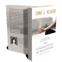 “A serene image of a hand in a meditation pose on a book cover, with white and gold design elements.”