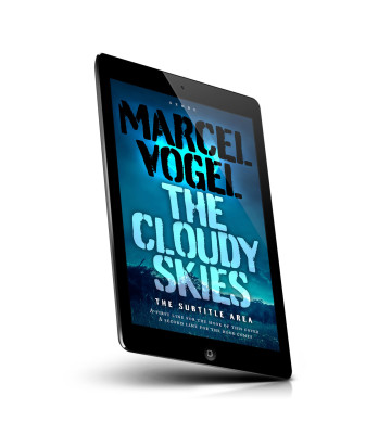 “A dark, moody book cover with a silhouette of a landscape beneath a cloudy, blue-tinted sky.”