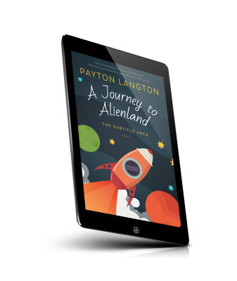 “A colorful book cover with a rocket flying through space, surrounded by stars and planets.”