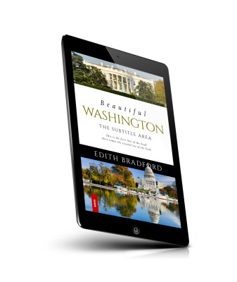 “A book cover featuring views of the White House and the Capitol Building, with a serene reflection in a pool.”