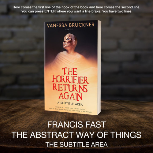 This book cover has 4 lines for the title, 1 line for the subtitle, 1 line for the author, 2 lines for the hook, and finally 1 line for the genre.