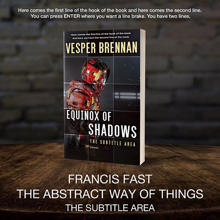 This book cover has 2 lines for the title, 1 line for the subtitle, 1 line for the author, 2 lines for the hook, and finally 1 line for the genre.